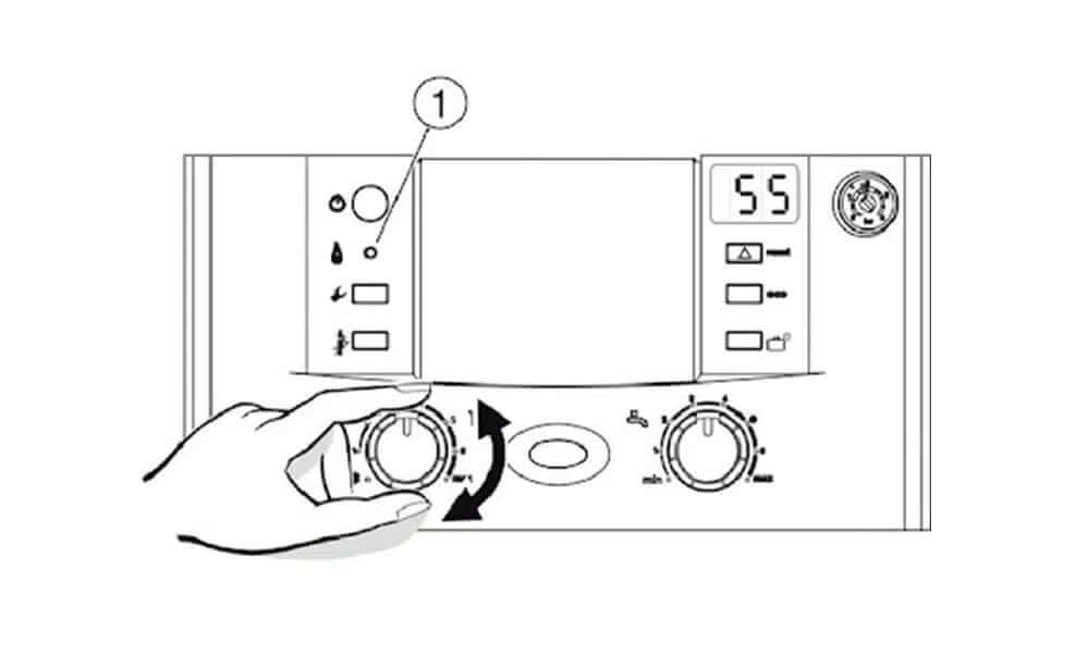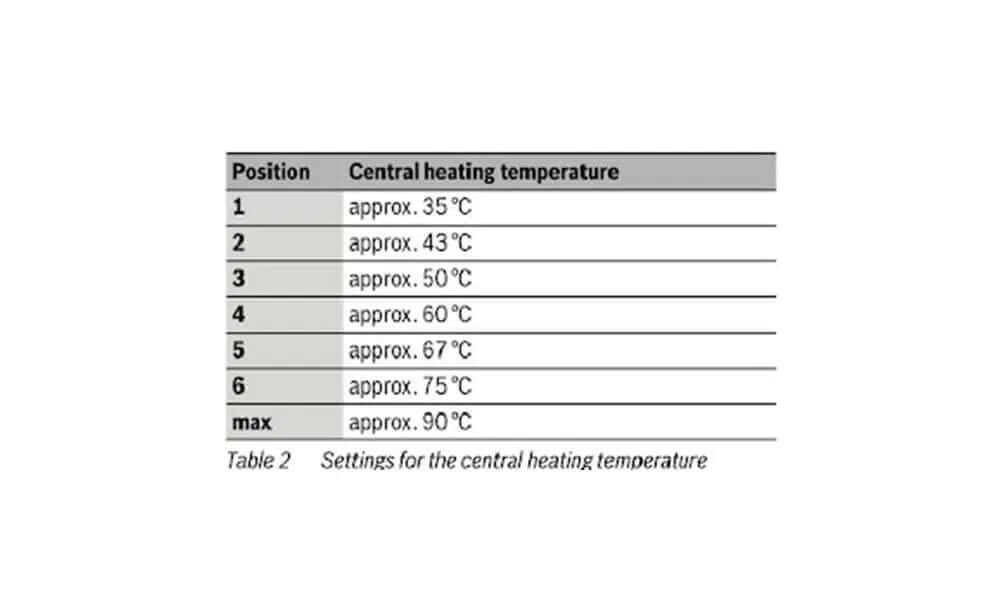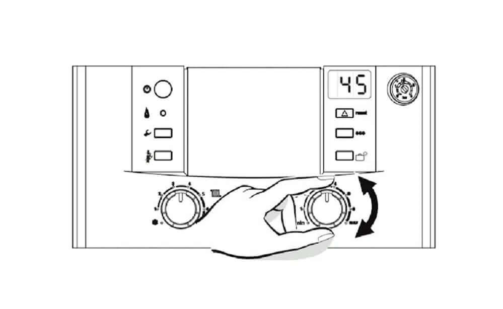 For a standard boiler with a hot water tank. Look for flow temperature control such as this, you may have to Google your specific boiler’s user manual.